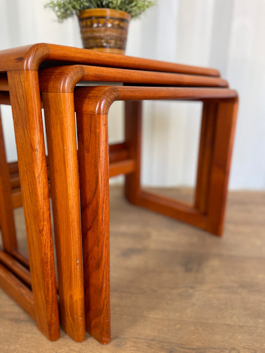 Vintage Teak Nest of Tables by O’Donnell Ireland – Mid Century Modern Side Tables – Sculpted Corners – Set of 3