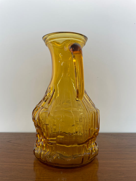 Vintage Amber Glass Jug | 1970s Textured Glass Pitcher | Retro Home Décor | Mid-Century Style