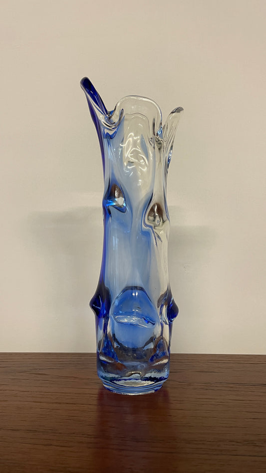 Mid-Century Blue & Clear Art Glass Vase by Josef Hospodka for Chribská, 1960s Czech Design