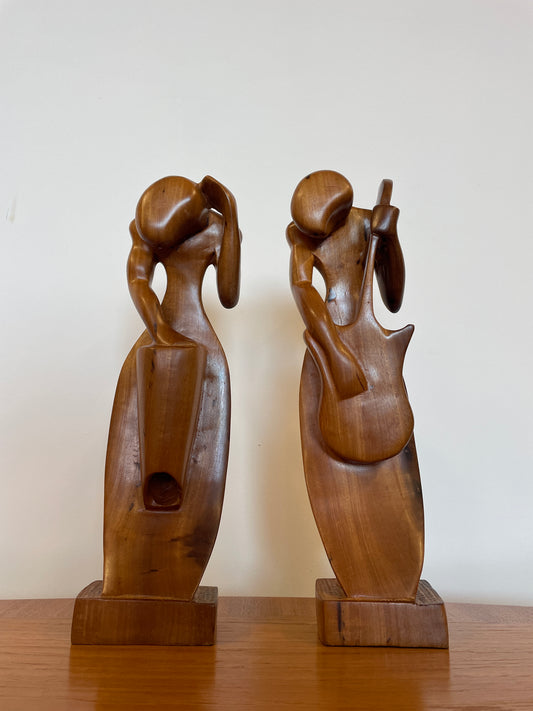 Pair Festus O. Idehen Wood Figures Hand Carved & Signed