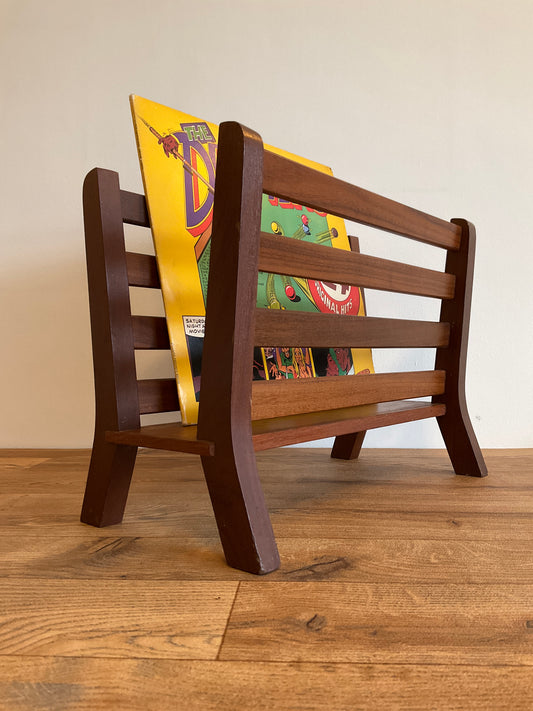 Vintage Mid-Century Teak Magazine Rack / Record Holder – Danish Style Vinyl Storage Stand 41cm