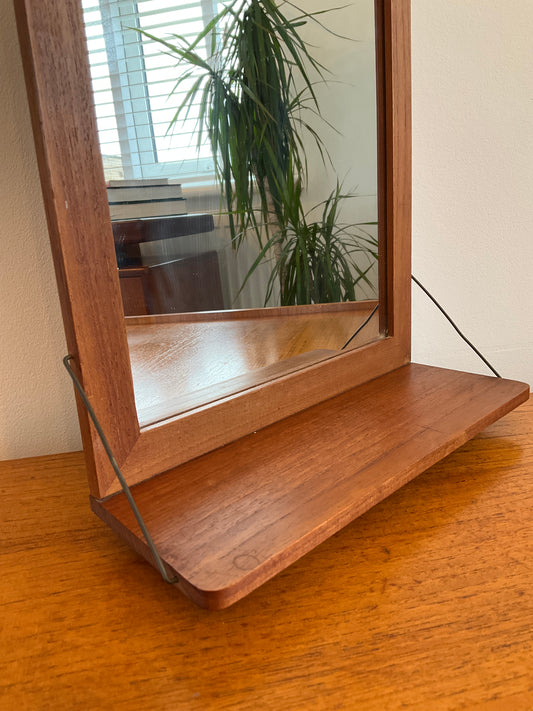 Danish Teak Wall Mirror with Shelf Mid Century Vintage 49cm x 28cm