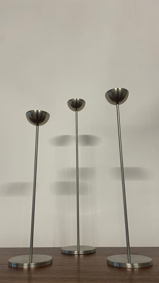 Vintage Danish Metal Tall Tea Light Holders – Set of 3 by Stilling of Denmark | Mid-Century Scandinavian Candlesticks