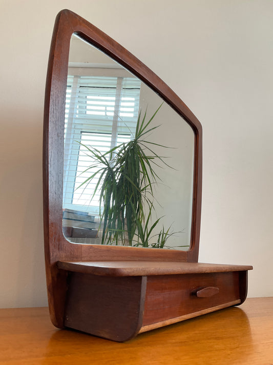Danish Wall Mirror with Shelf & Drawer Teak Vintage – Mid Century Modern Dressing Mirror 52cm