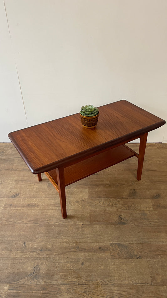 Mid-Century Danish Teak Coffee Table with Shelf | Scandinavian Vintage 1960s