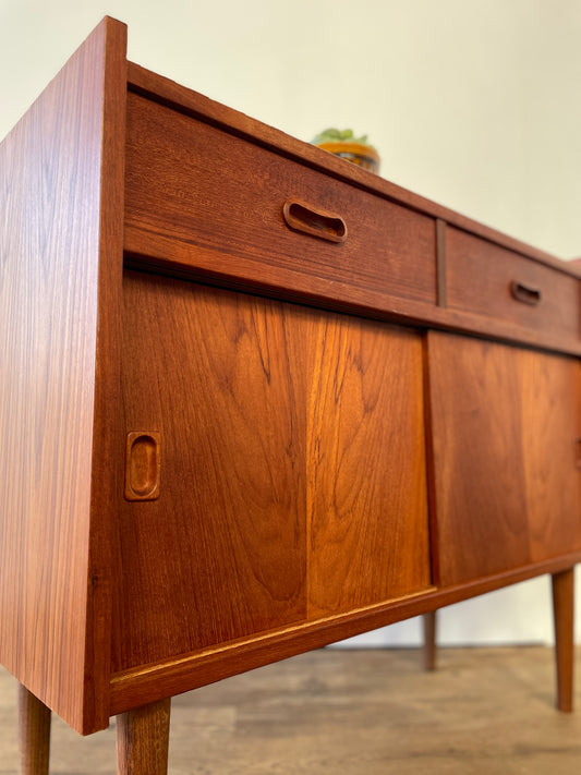 Mid-Century Danish Teak Cabinet with Sliding Doors & Drawers | 1960s Sideboard