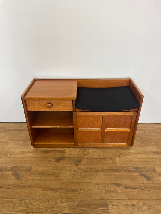 Nathan Mid-Century Telephone Table Teak - Compact Retro Sideboard Hall Seat Bench