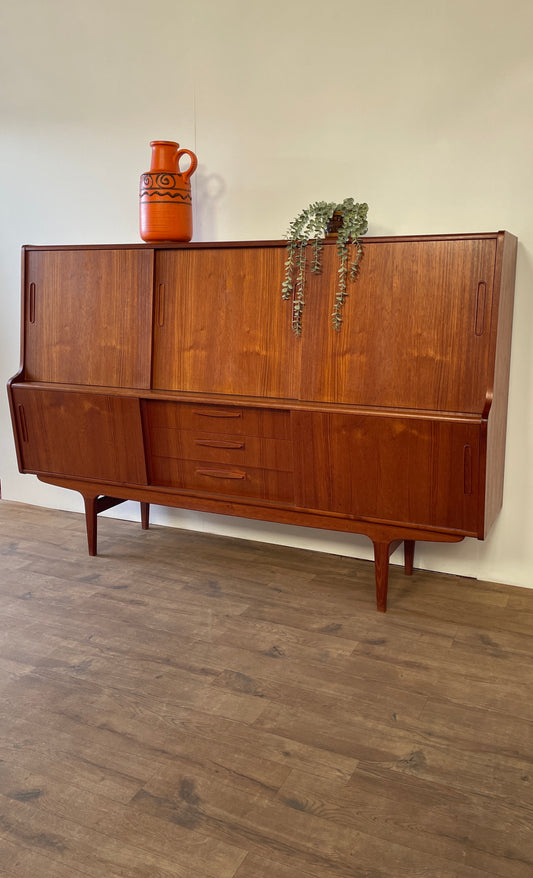 Mid-Century Danish Teak Highboard Sideboard with Sliding Doors & Drawers