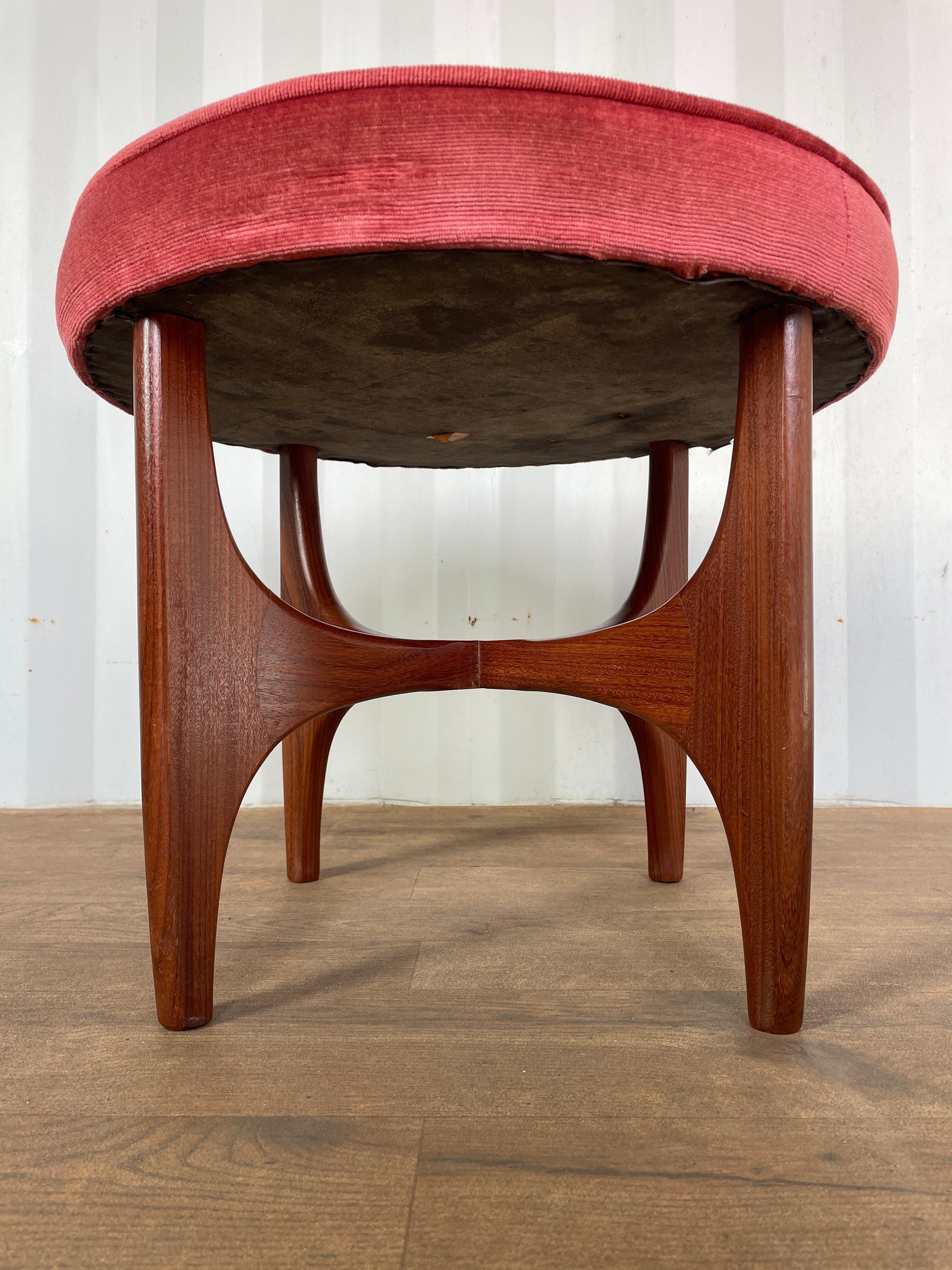 G Plan Fresco Vintage Teak Stool / Mid Century Dressing Table Seat / Pink Upholstered Stool 50cm