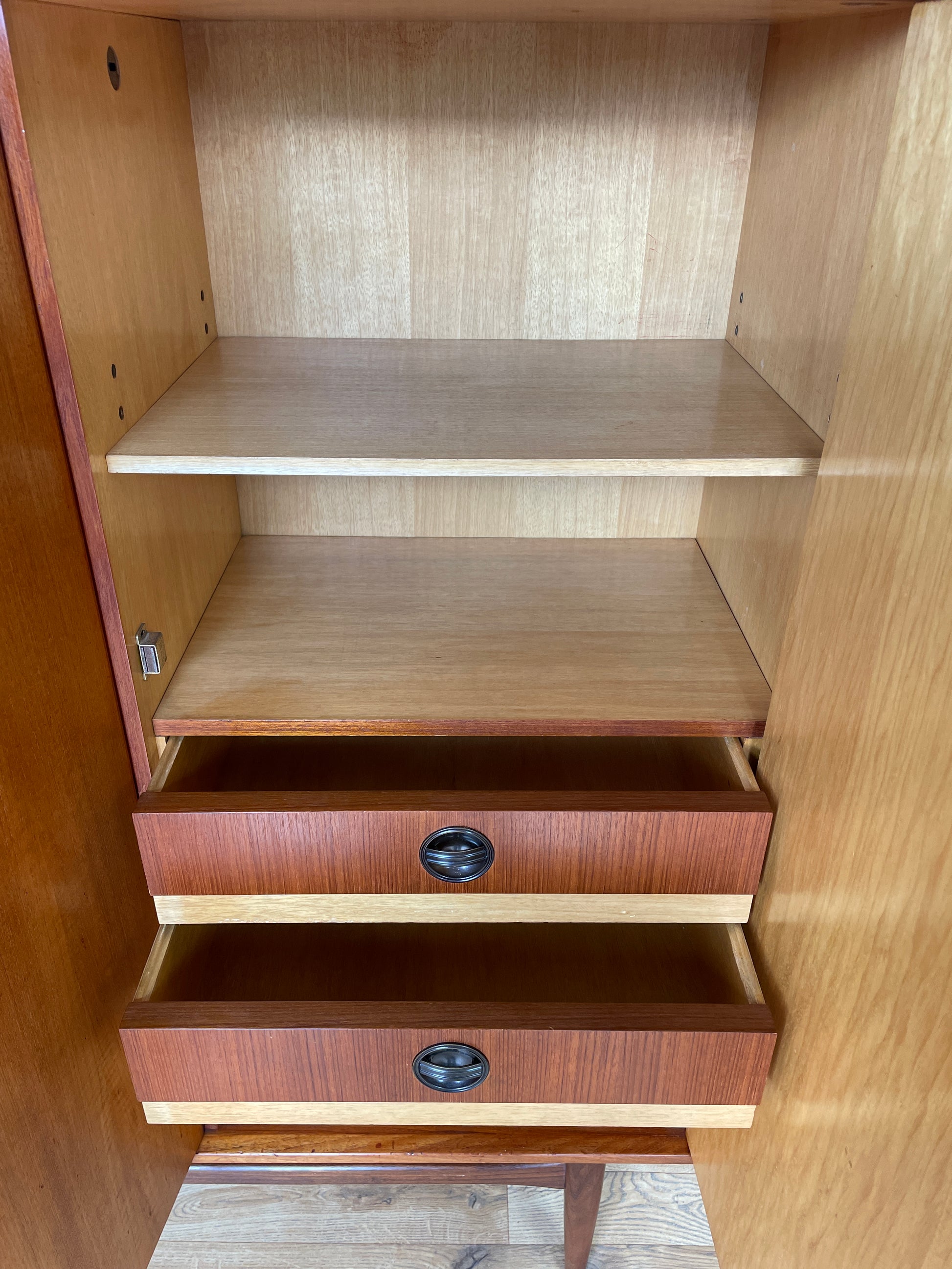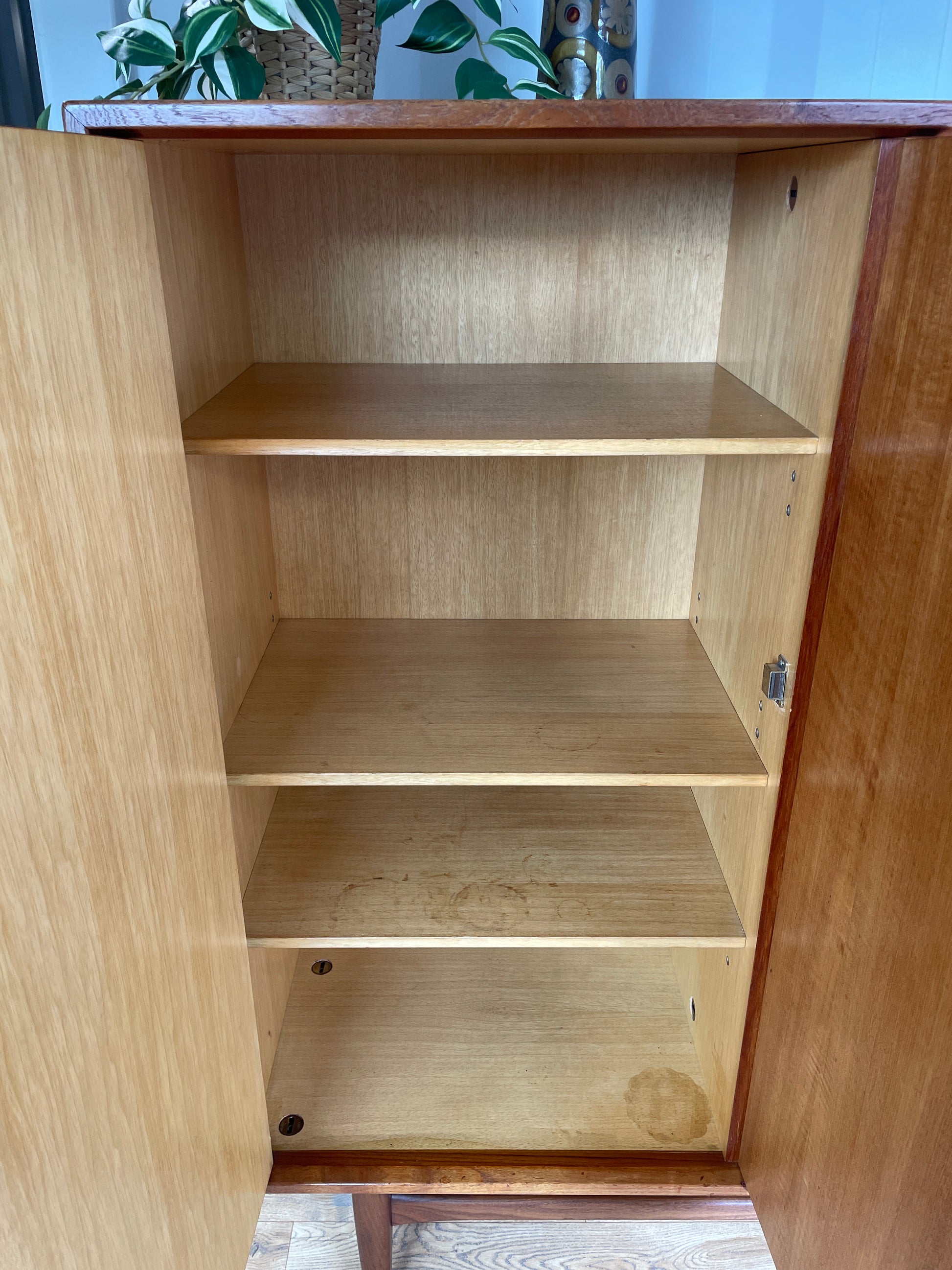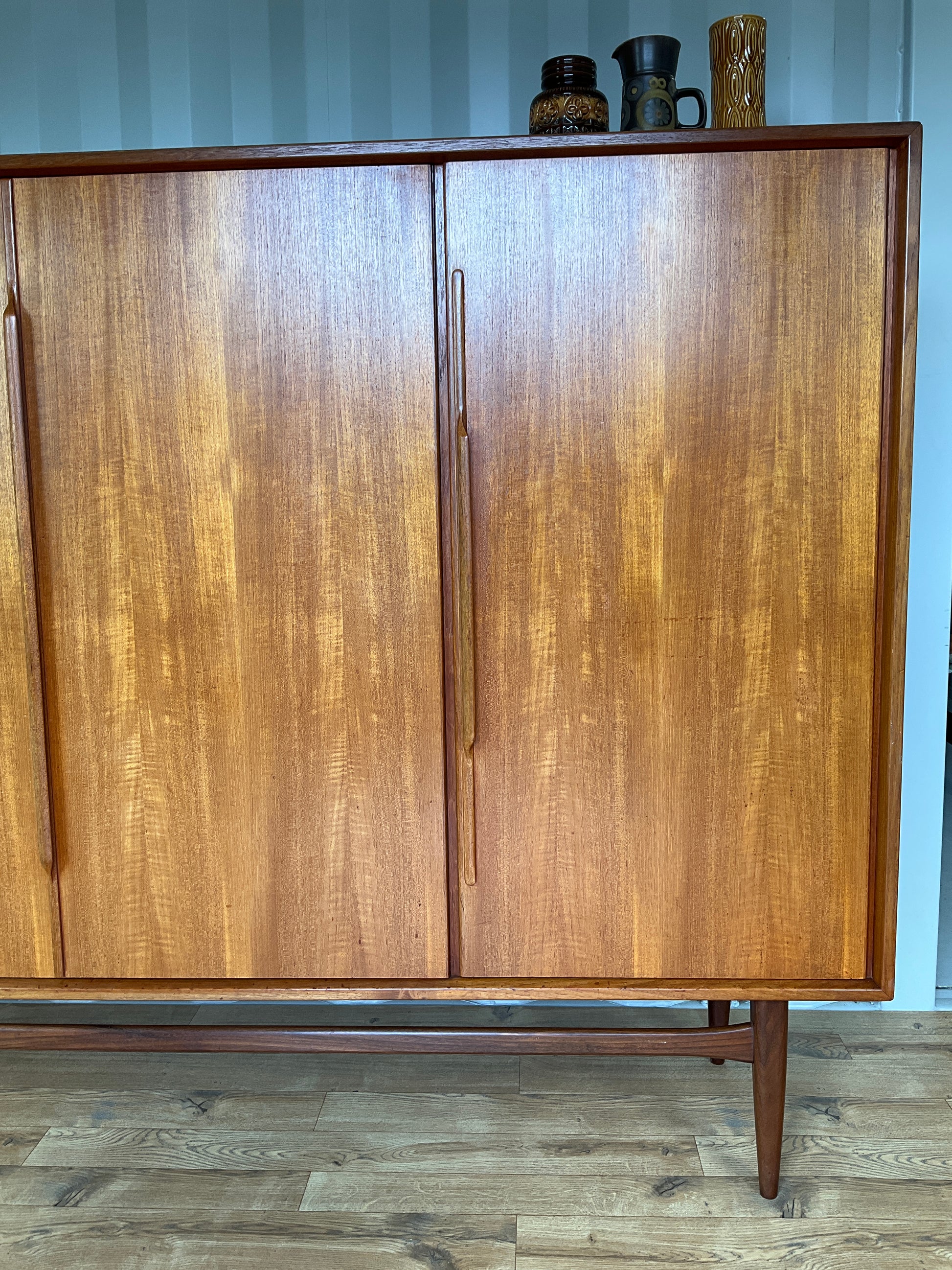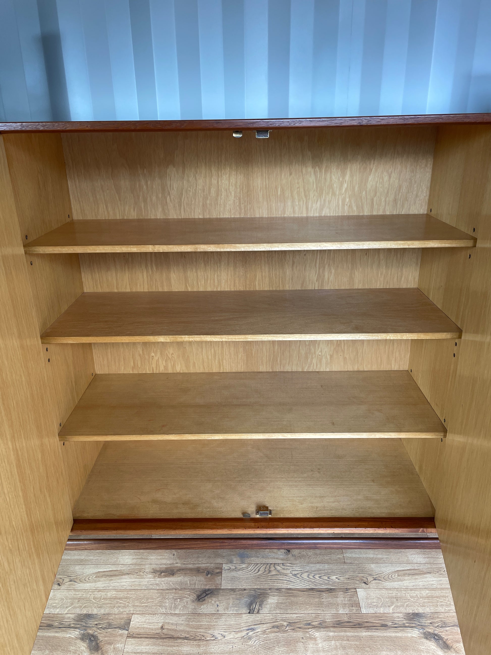 This very large stunning mid-century sideboard by Heinrich Riestenpatt is a true vintage gem. Crafted from high-quality teak, this free-standing sideboard features four doors with hinge mechanisms, adjustable shelves, and drawers, making it a versatile addition to any living room, lounge, or dining room. The rich brown colour of the wood add to the mid-century modern style of the piece.