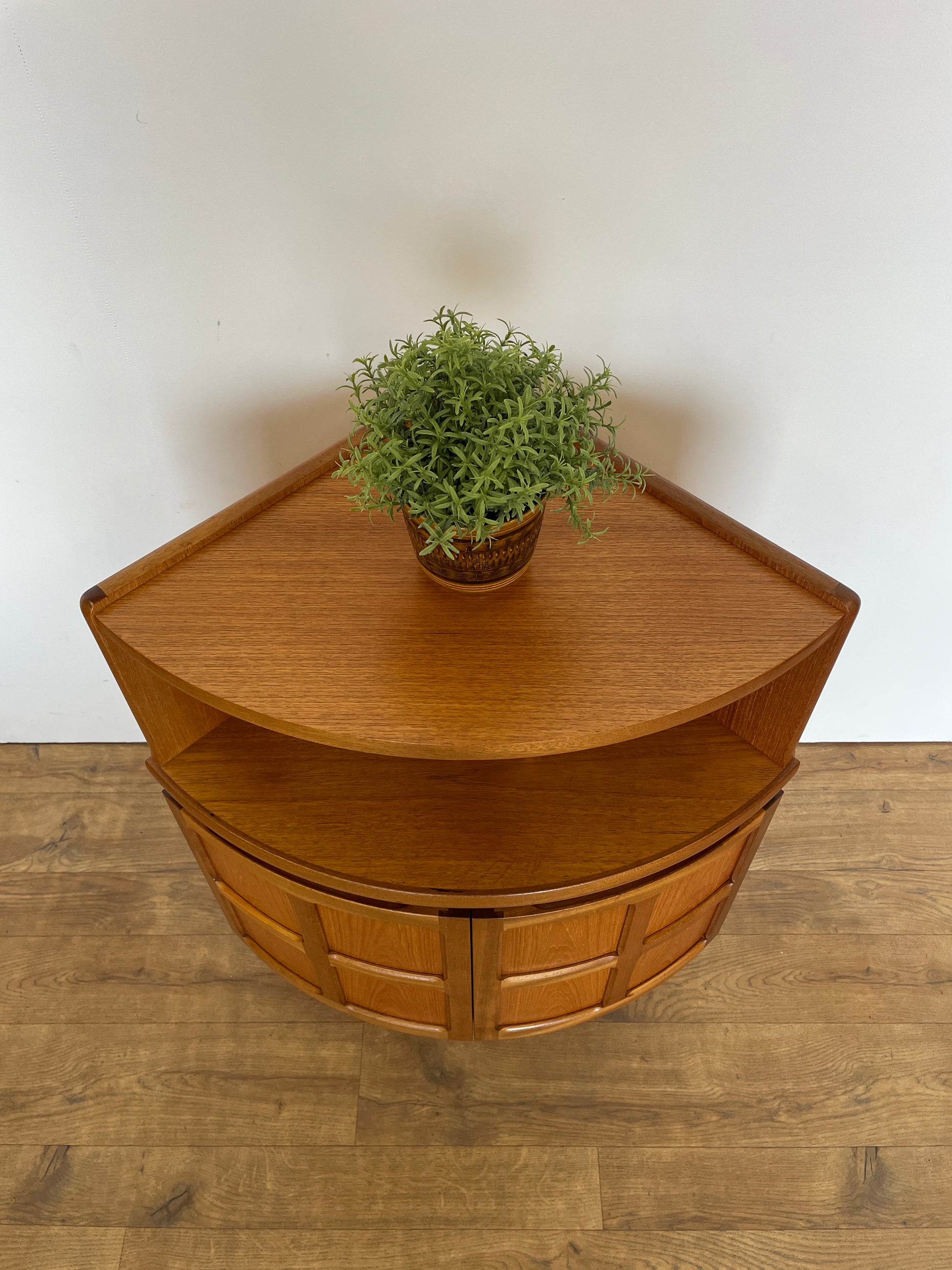 Mid-Century Nathan Teak Corner Cabinet – Vintage Storage Unit