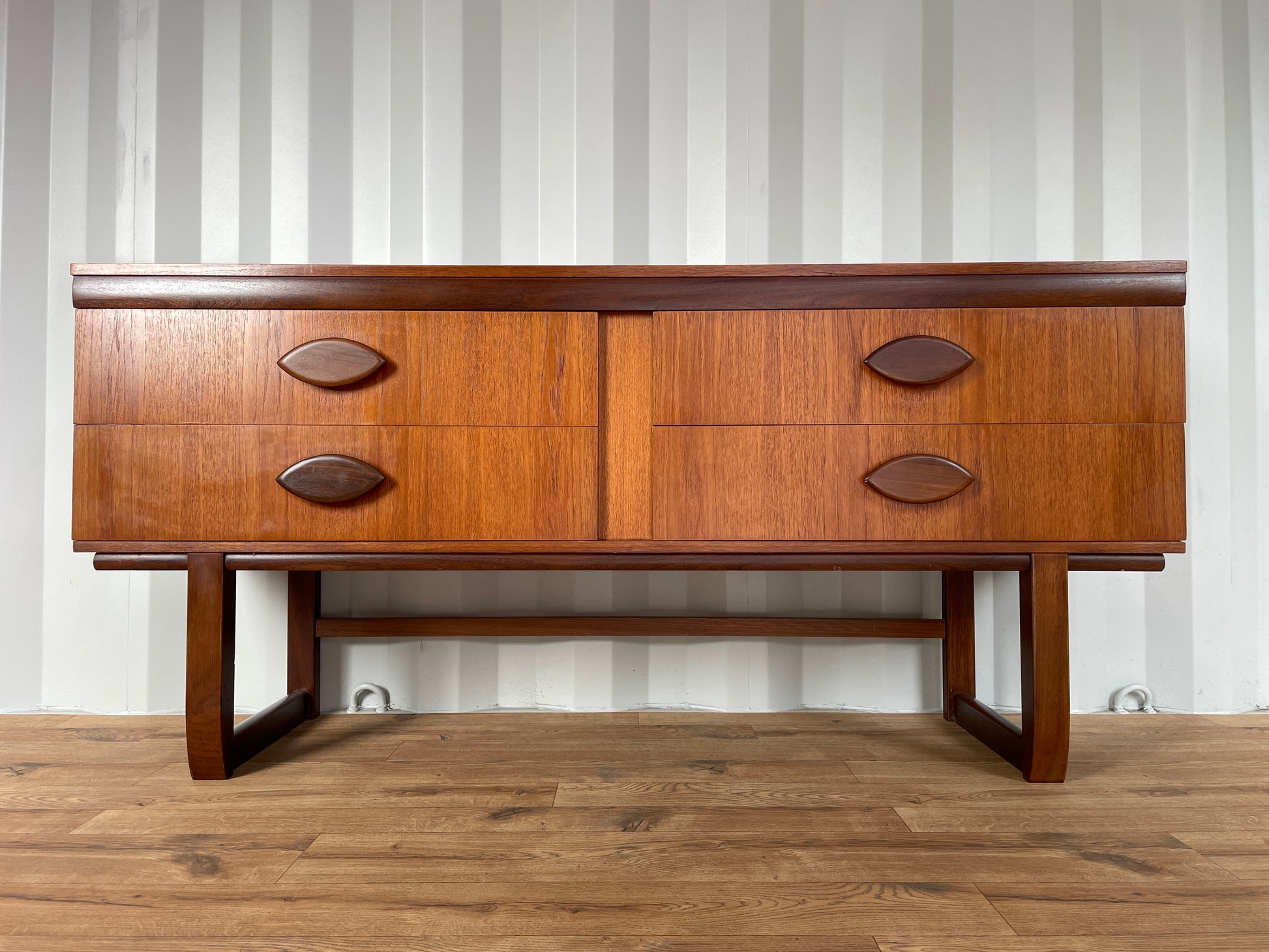 Measuring 152cm in width, 41cm in depth, 72cm in height, this sideboard offers ample space for your entertainment system, while the mid-century modern style brings a timeless touch to your decor. Whether you're looking to declutter your living room or create a cosy reading nook, this teak sideboard is the perfect fit.