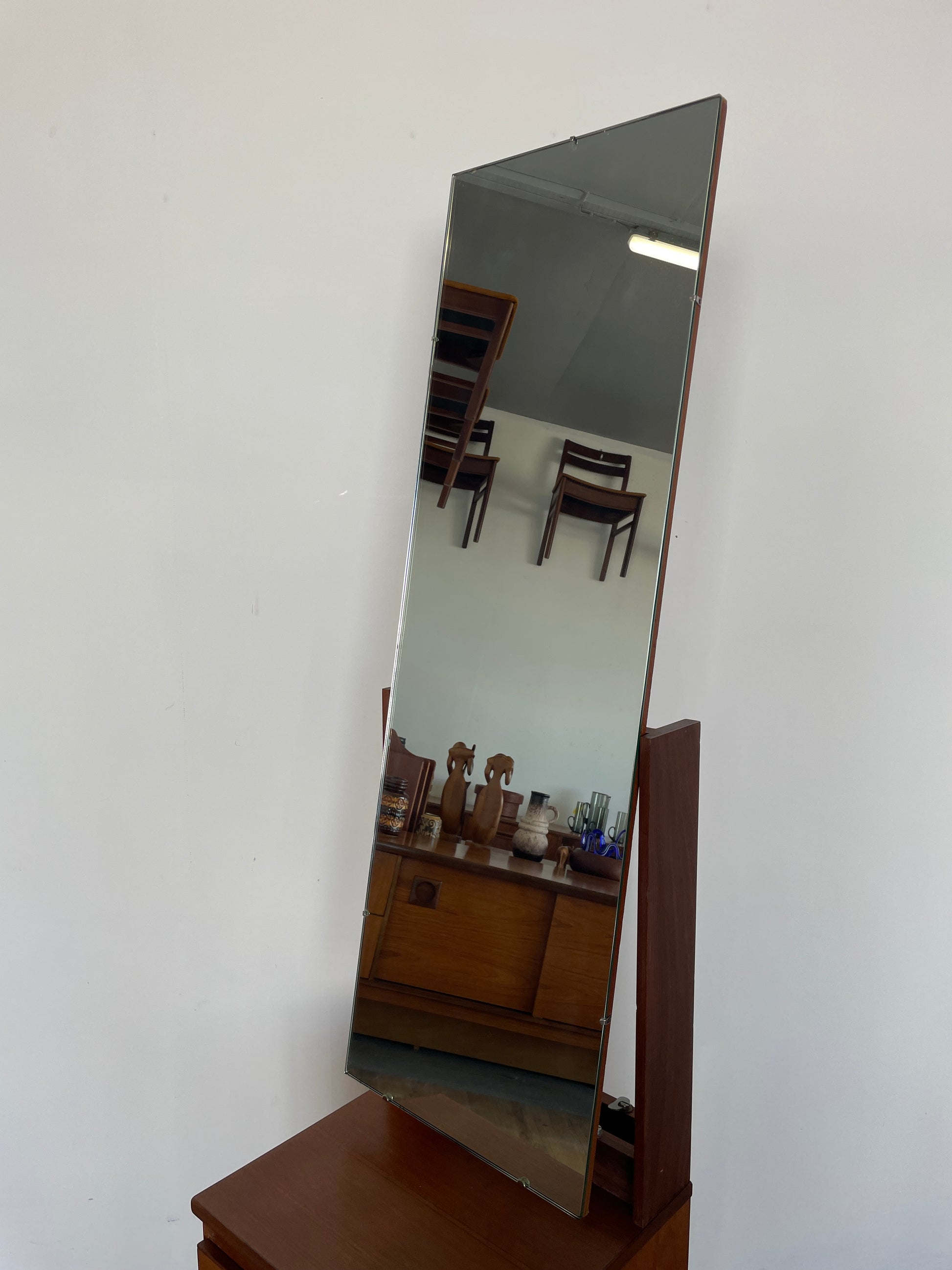 Vintage Meredew Cheval Mirror with Drawers – Mid-Century Modern Teak