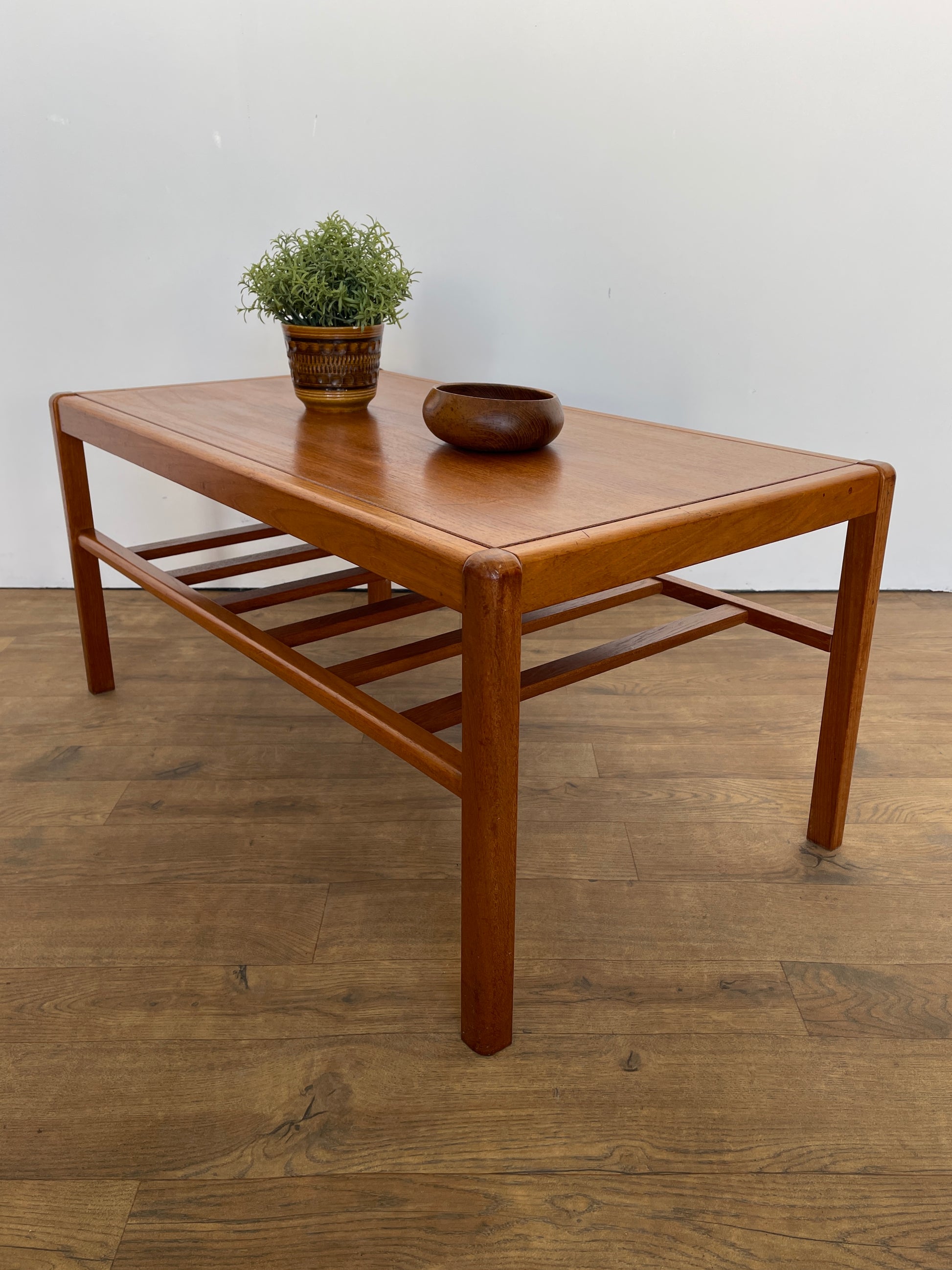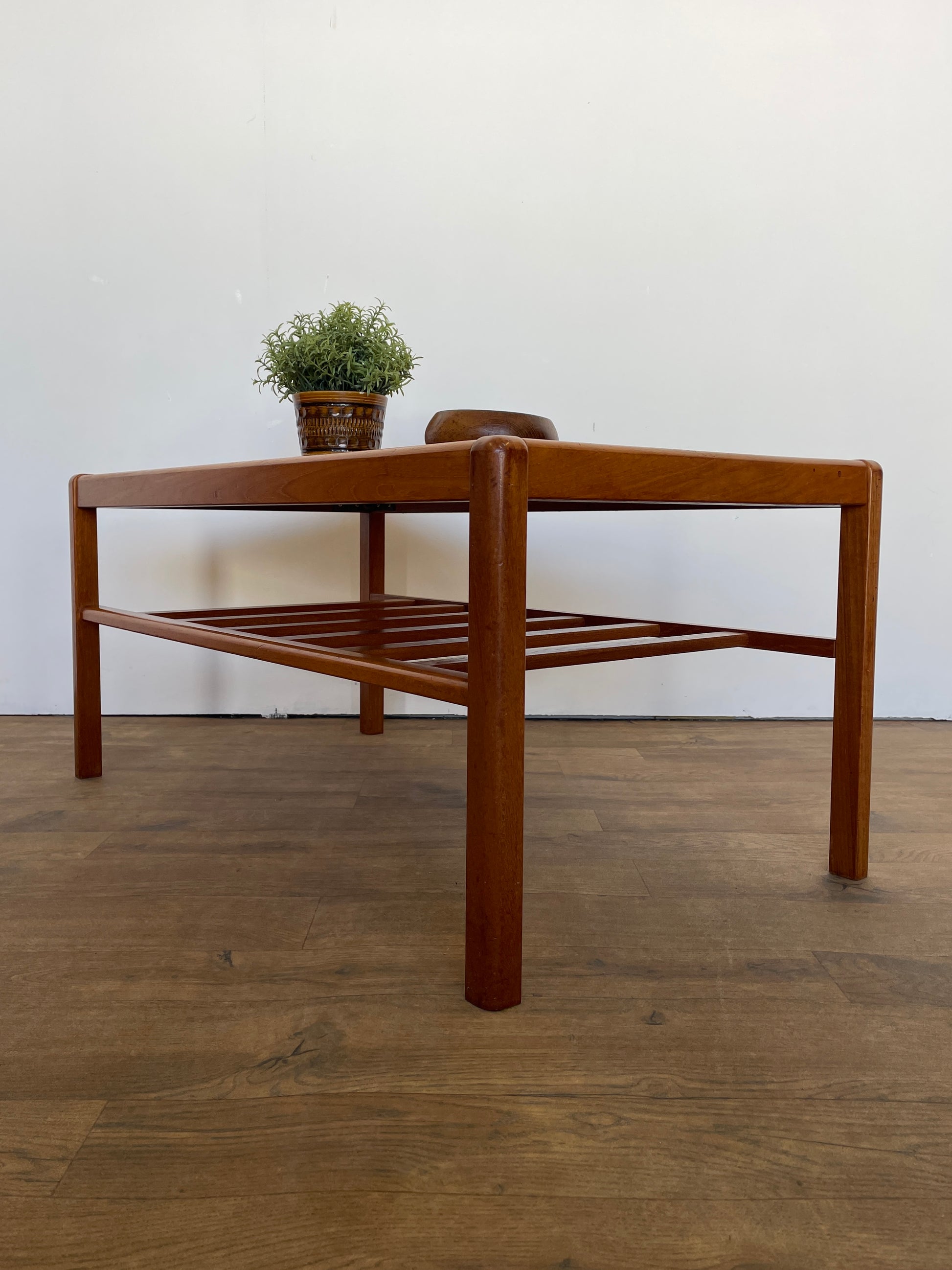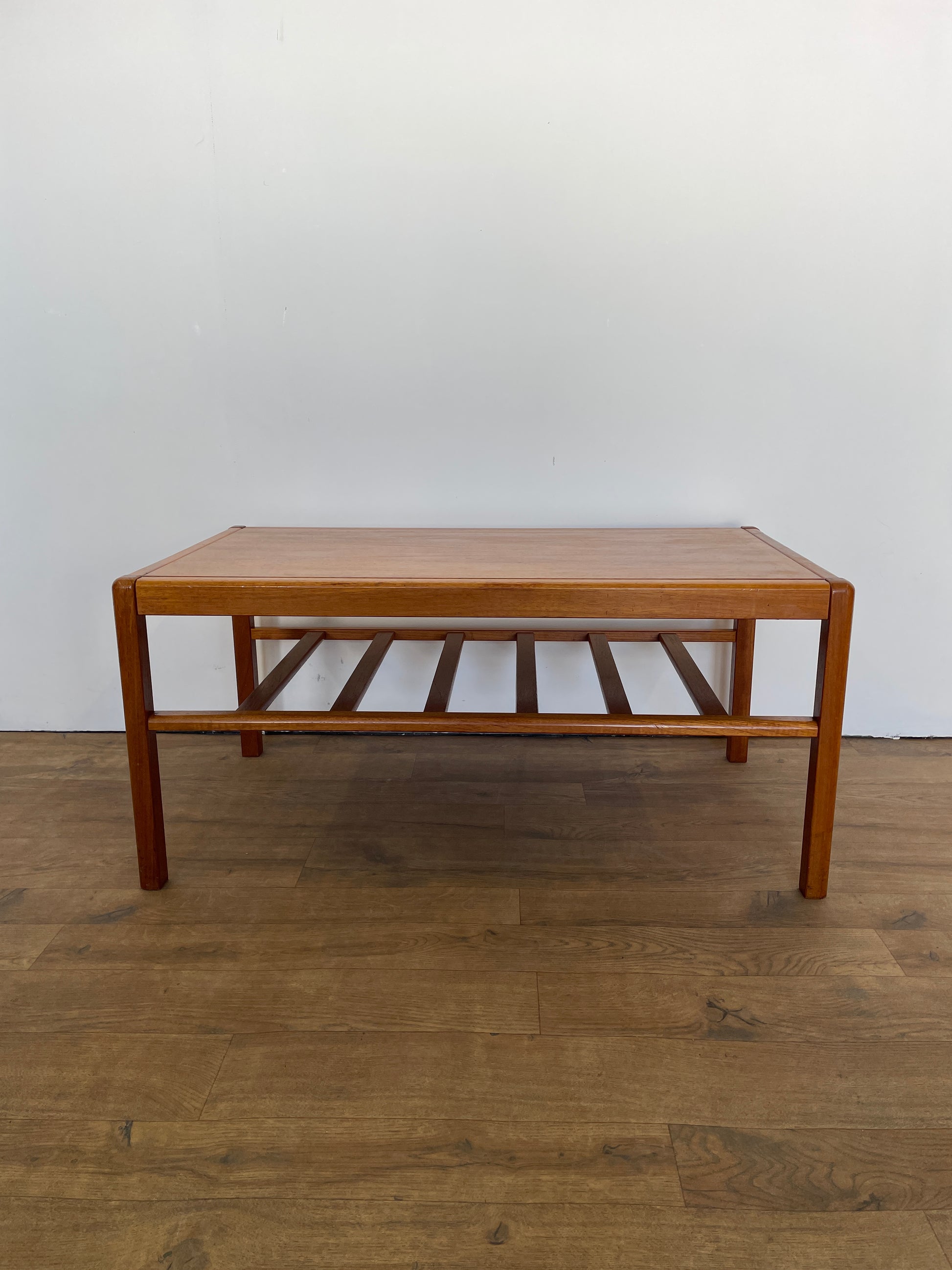Vintage Mid-Century Teak Coffee Table – Danish Style with Slatted Shelf