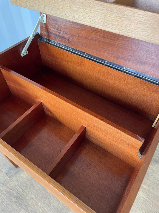 Mid-Century Teak Sewing Box Table / Craft Storage Cabinet with Lift-Up Compartments - Vintage